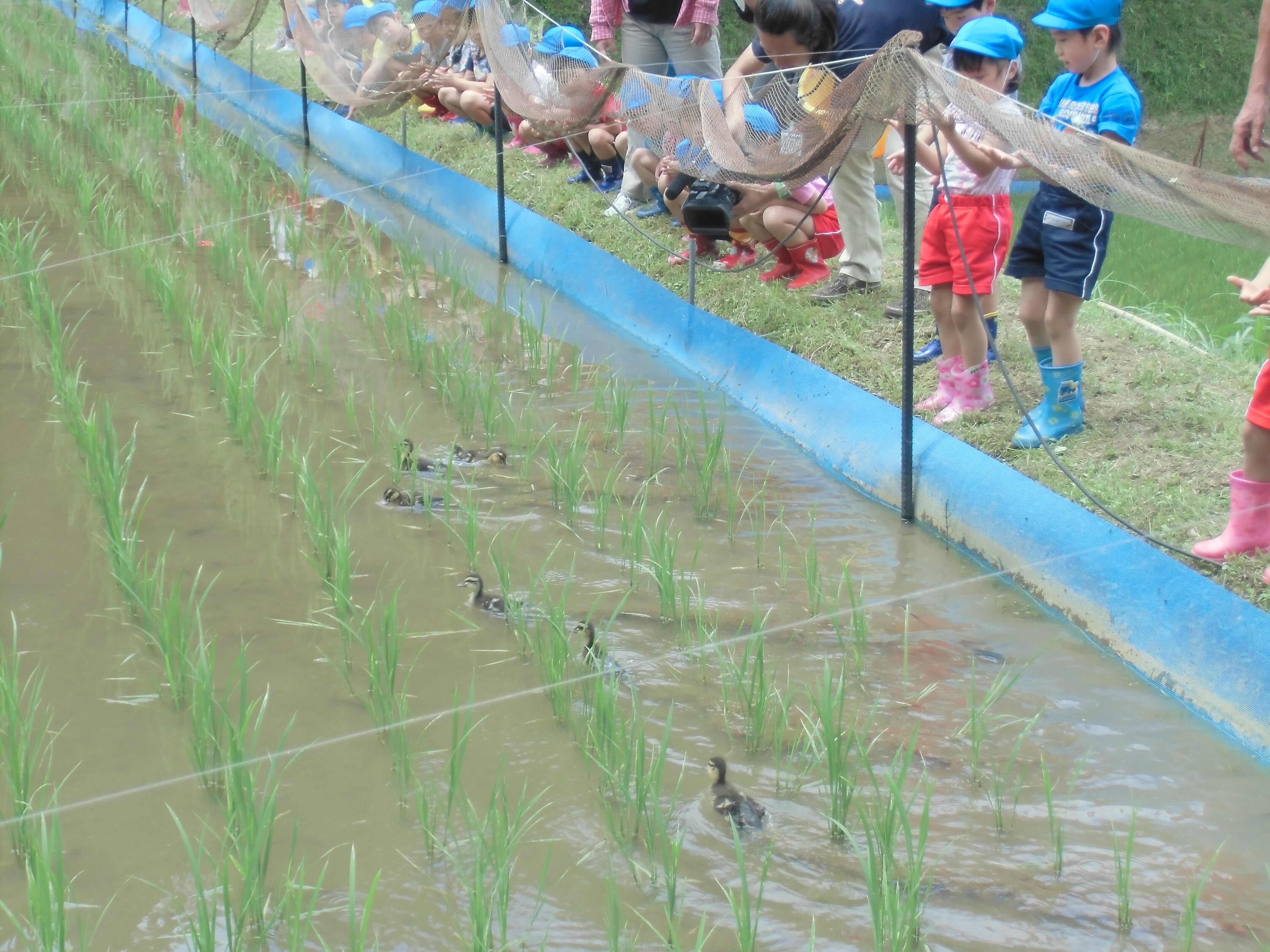 合鴨達が稲に付く害虫や田んぼに生える雑草を食べてくれるので、除草剤や農薬は一切不要。